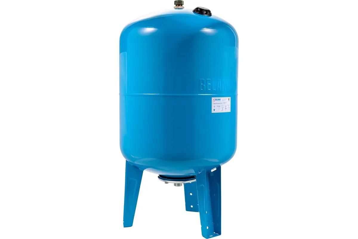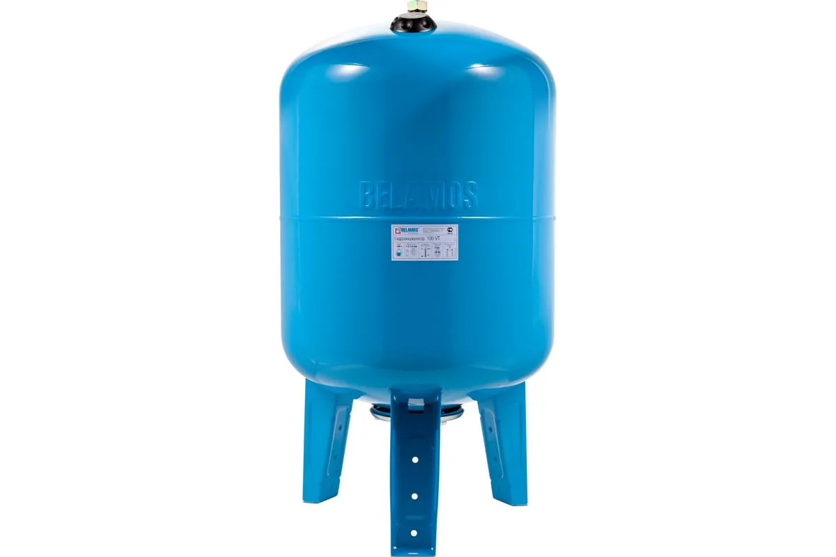 Гидроаккумулятор вертикальный 100VT БЕЛАМОС представляет собой металлический бак, предназначенный для накопления воды. Подходит для использования с погружными насосами мощностью до 2,5 кВт. Устройство компенсирует его перепады в системе водоснабжения. Если такой прибор установлен, то насос включается не каждый раз при открытии крана, что значительно повышает его ресурс. Корпус и фланец агрегата выполнены из стали толщиной 0,8 мм с порошковой окраской, что обеспечивает ему надежность и защиту от коррозии. Необходимая модель гидроаккумулятора выбирается в зависимости от объема потребляемой воды и мощности насоса.
