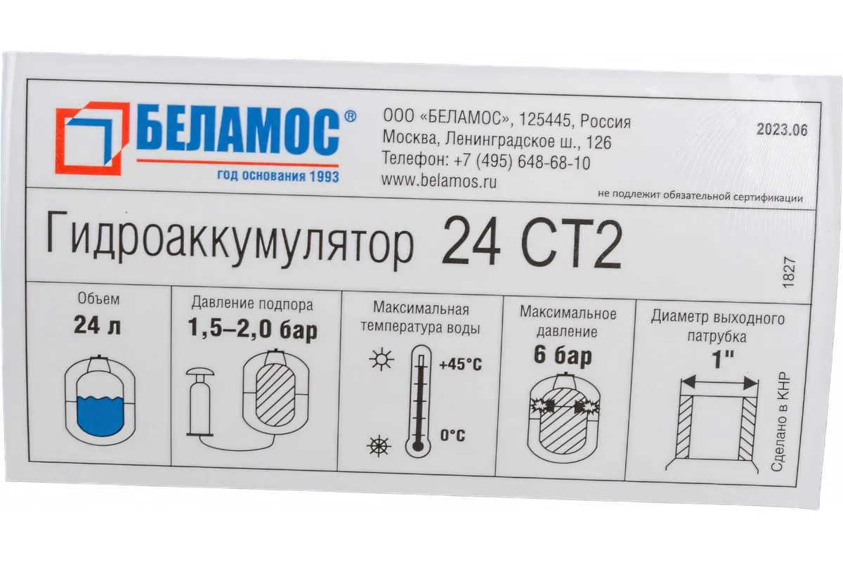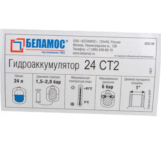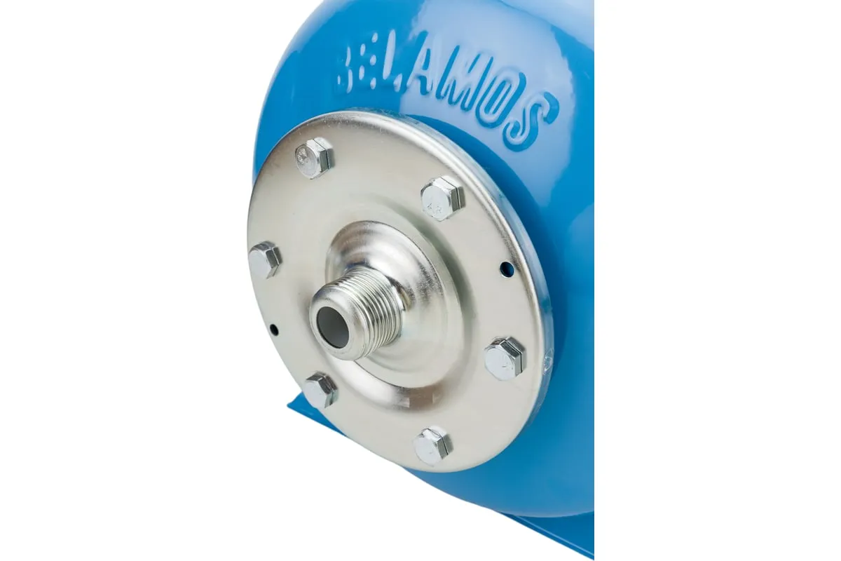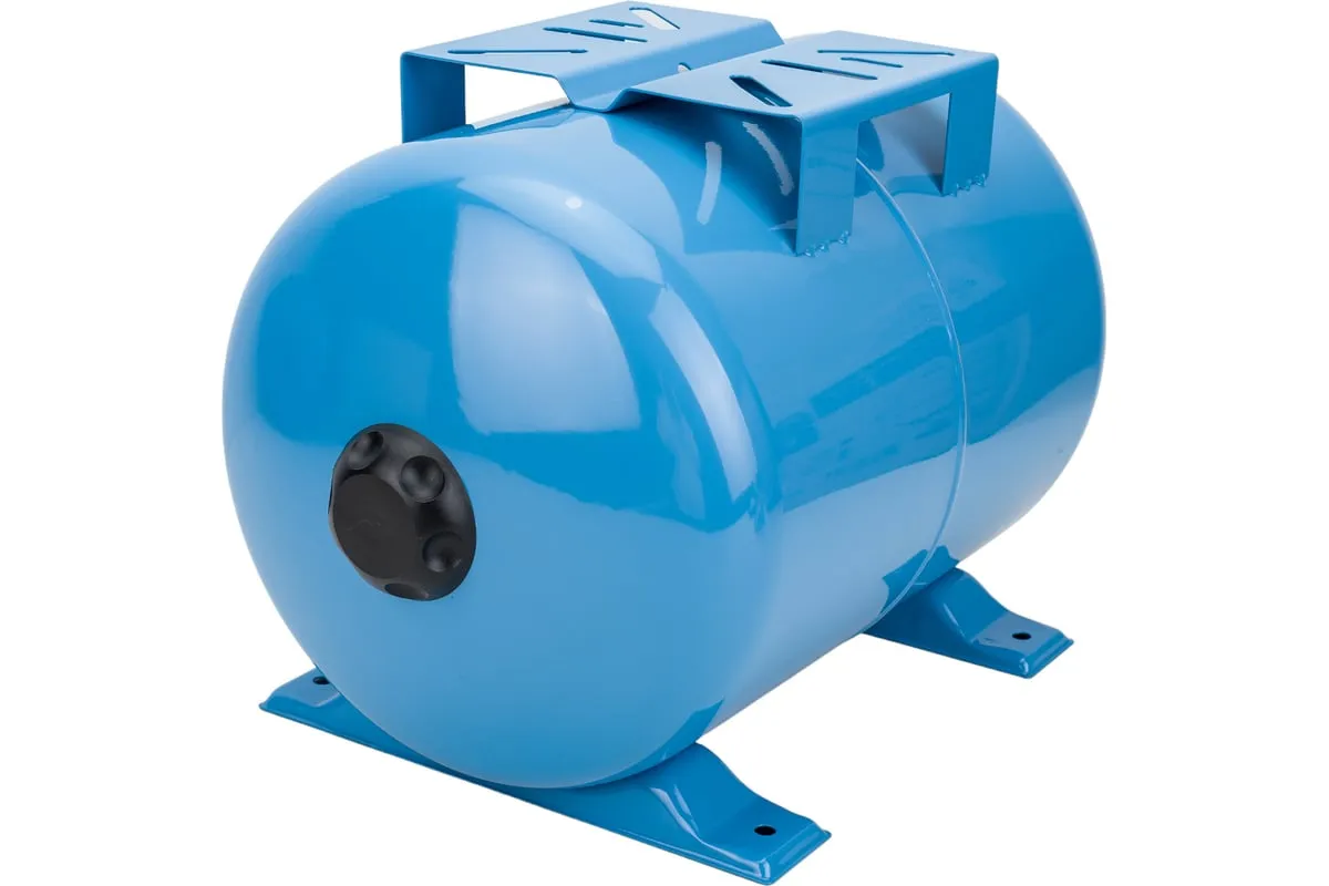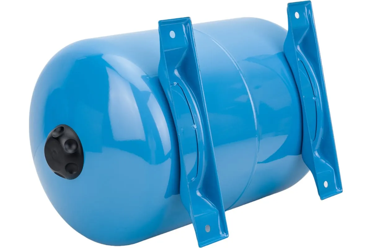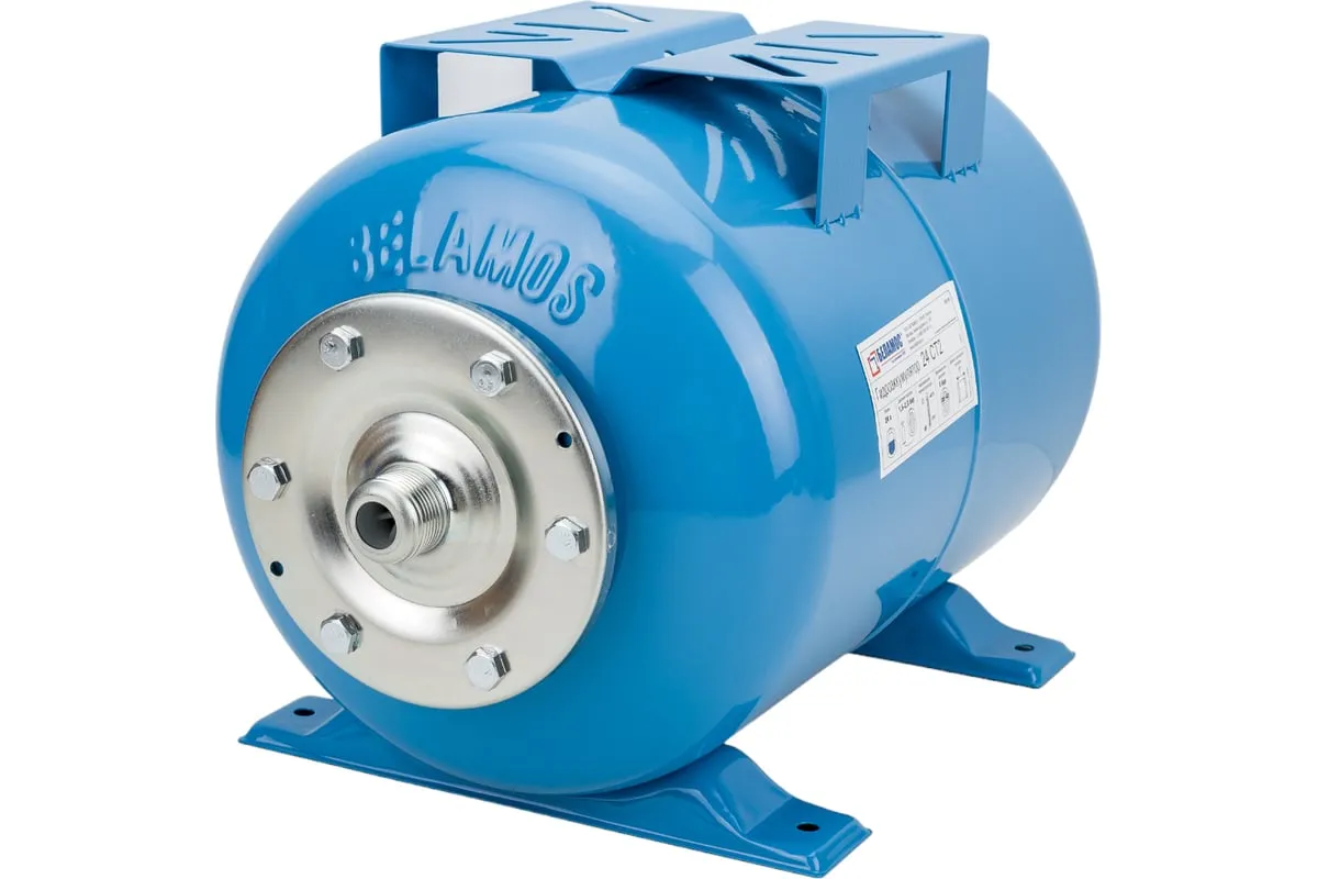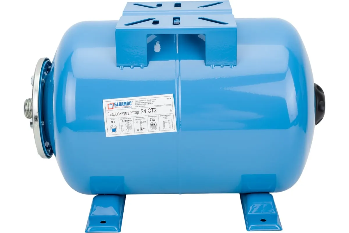 Гидроаккумулятор горизонтальный 24СT2 БЕЛАМОС представляет собой металлический бак, предназначенный для накопления воды. Подходит для использования с погружными и поверхностными насосами мощностью до 1000 Вт. Устройство компенсирует скачки давления в системе водоснабжения. Если такой прибор установлен, то насос включается не каждый раз при открытии крана, что значительно повышает его ресурс. Корпус и фланец агрегата выполнены из стали толщиной 0,8 мм с порошковой окраской, что обеспечивает ему надежность и защиту от коррозии. Внутри воздушное и водное пространство разделяются мембраной, соединяющейся с корпусом с помощью фланца. Мембрана изготовлена из бутилированной резины, которая по сравнению с обычной резиной не гниет и не трескается. Для предотвращения развития бактерий необходимо периодически скачивать воздух из бака. Необходимая модель гидроаккумулятора выбирается в зависимости от объема потребляемой воды и мощности насоса.