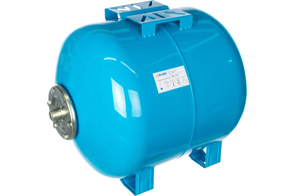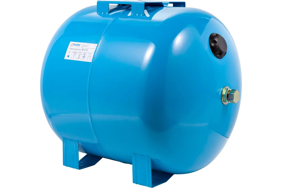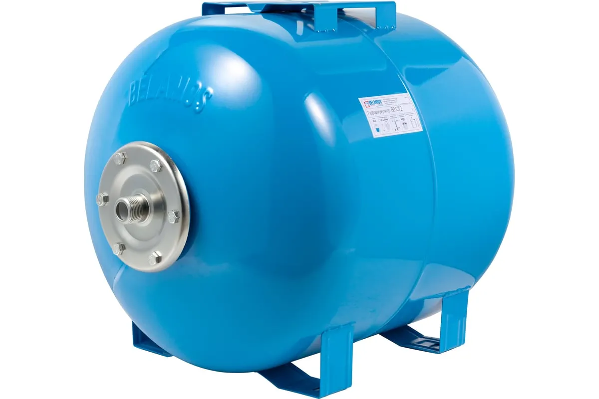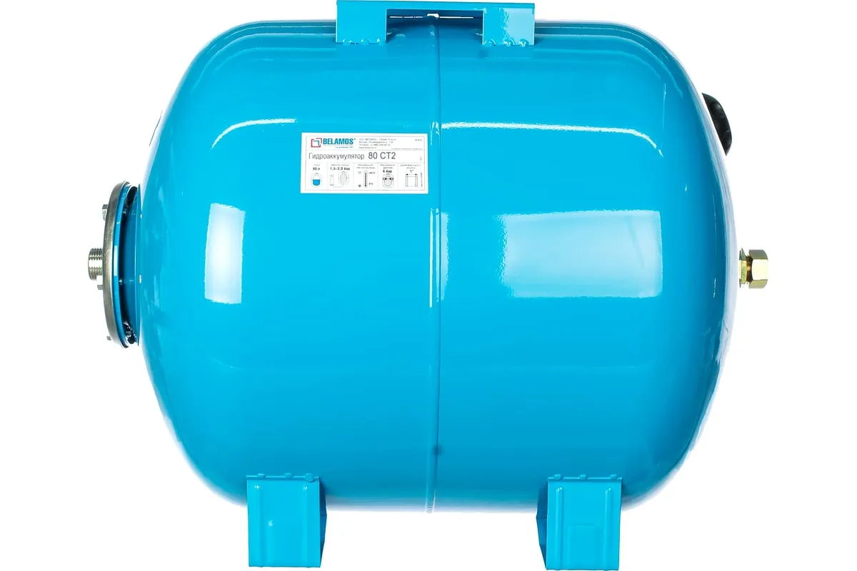 Гидроаккумулятор 80CT2 БЕЛАМОС представляет собой металлический бак, предназначенный для накопления воды. Подходит для использования с погружными и поверхностными насосами мощностью до 1,5 кВт. Устройство компенсирует его перепады в системе водоснабжения. Если такой прибор установлен, то насос включается не каждый раз при открытии крана, что значительно повышает его ресурс. Корпус и фланец гидроаккумулятора выполнены из стали толщиной 0,8 мм с порошковой окраской, что обеспечивает ему надежность и защиту от коррозии. Внутри воздушное и водное пространство разделяются мембраной, соединяющейся с корпусом с помощью фланца. Мембрана изготовлена из бутилированной резины, которая по сравнению с обычной резиной не гниет и не трескается. Для предотвращения развития бактерий необходимо периодически скачивать воздух из бака. Необходимая модель гидроаккумулятора выбирается в зависимости от объема потребляемой воды и мощности насоса.