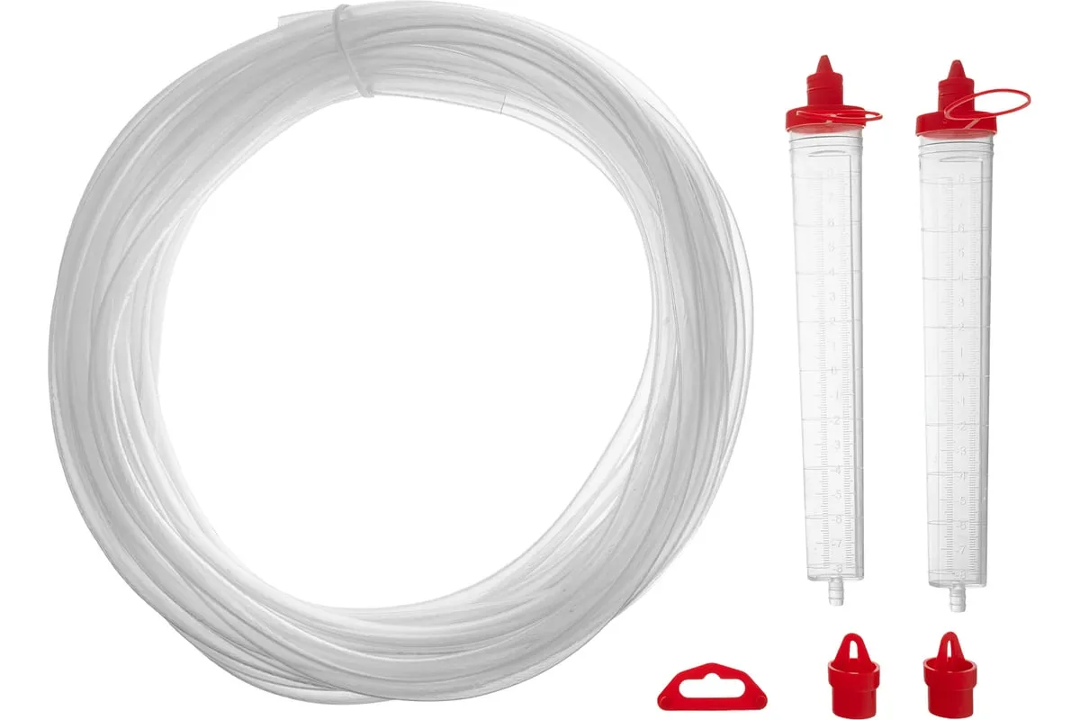 Гидроуровень с удлиненными колбами и рельефной градуировкой предназначен для выравнивания объектов на расстоянии до 20 м. Используется при проведении ремонтно-строительных работ: изготовлении опалубки, установке фундамента, кладке плитки. Особо светлые колбы с рельефной градуировкой облегчают считывание результатов измерения.