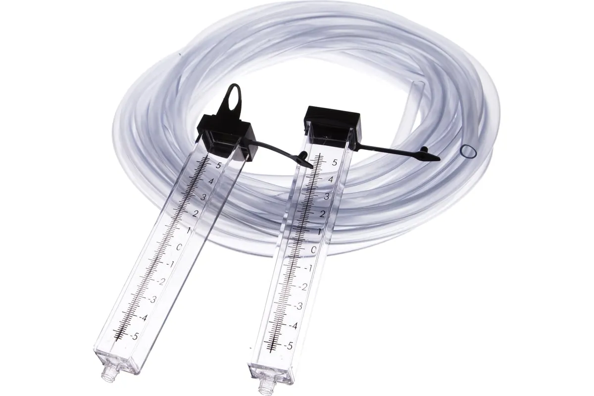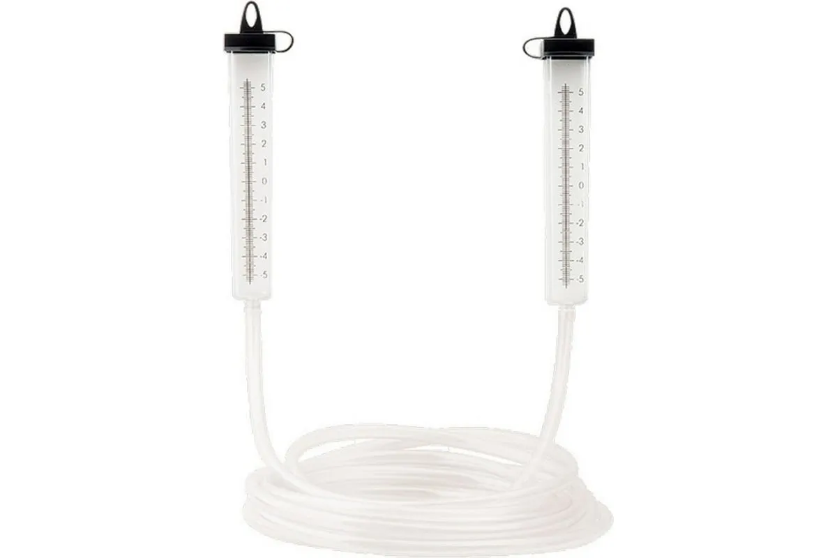 Гидроуровень СИБРТЕХ L 7 м, D 8 мм, со шкалой 37045 работает по принципу сообщающихся сосудов, то есть уровень воды в обеих колбах должен находится на одной высоте. Используется для проведения горизонтальных линий на поверхности. Гибкий шланг имеет диаметр 8 мм, а длина приспособления составляет 7 метров.