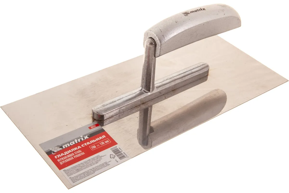 Гладилка Matrix 86733 размером 280 x 130 мм, из нержавеющей стали, с деревянной ручкой, позволяет ровным слоем наносить на поверхности штукатурку и клеевые растворы. Зеркальная полировка снижает риск прилипания материала к полотну, благодаря чему покрытие получается идеально гладким.