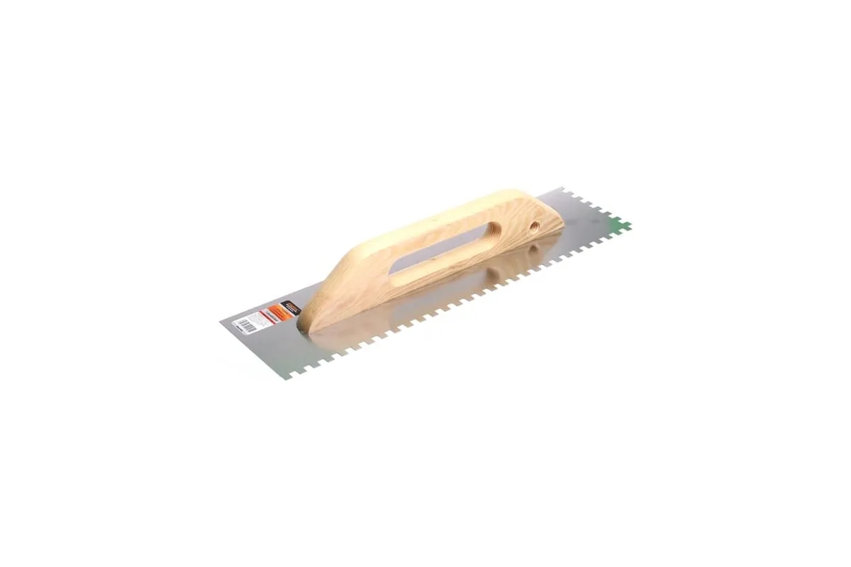 Гладилка предназначена для нанесения и разравнивания строительной или клеевой смеси, клея плиточного, клея для блоков при выполнении облицовочных, печных и других видов работ. Полотно выполнено из качественной нержавеющей стали, благодаря чему отличается прочностью и долговечностью. Эргономичная деревянная рукоятка служит для комфортной работы.