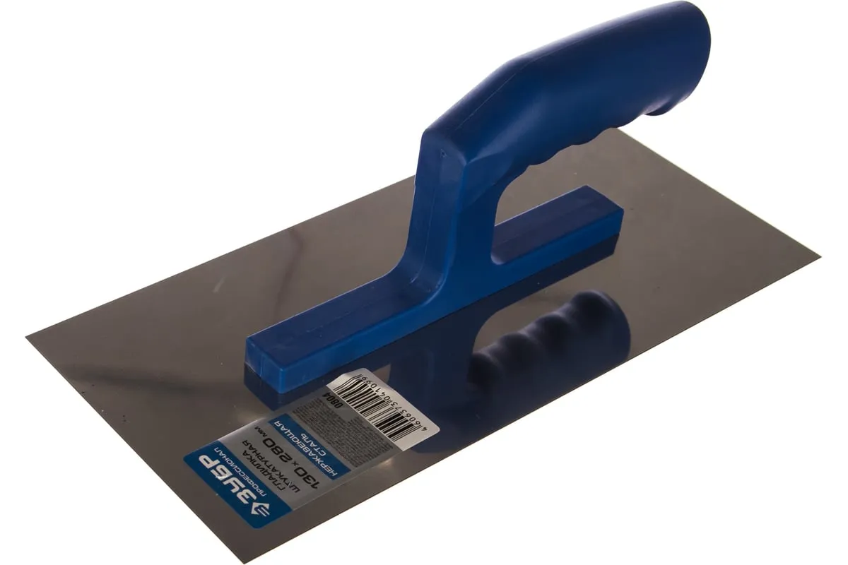 Гладилка ЗУБР 130х280мм 0804 - ручной инструмент, применяемый при строительных работах. При помощи гладилки удобно наносить и разравнивать различные растворы и смеси. Полотно инструмента изготовлено из нержавеющей стали, что продлевает рабочий ресурс.