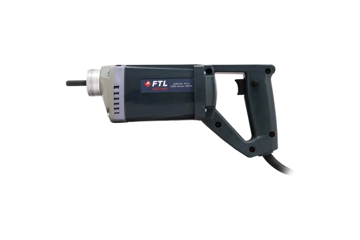 Глубинный вибратор FTL MVC-850 7019 предназначен для эффективного уплотнения бетонных смесей и цементных растворов. Модель широко используют при изготовлении железобетонных изделий для сборного строительства и возведении монолитных конструкций с различной степенью армирования. Амплитуда колебаний сердечника внутри булавы составляет всего 0.8 мм.