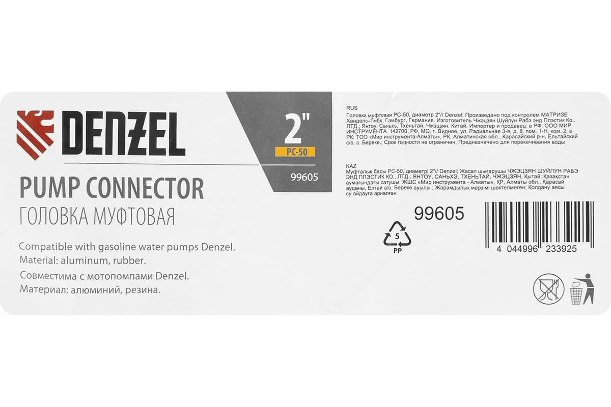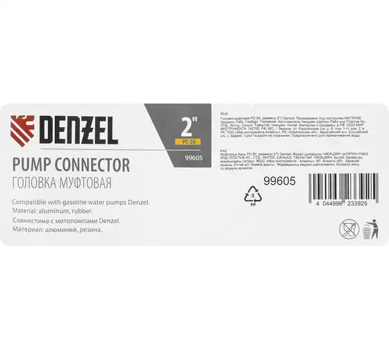 Муфтовая головка Denzel PC-50 99605 с присоединительным диаметром 2" предназначена для соединения выходного патрубка мотопомпы с напорным рукавом. Подходит к моделям Denzel 99201 и 99203. Используется для организации систем полива, водоснабжения, пожаротушения.
