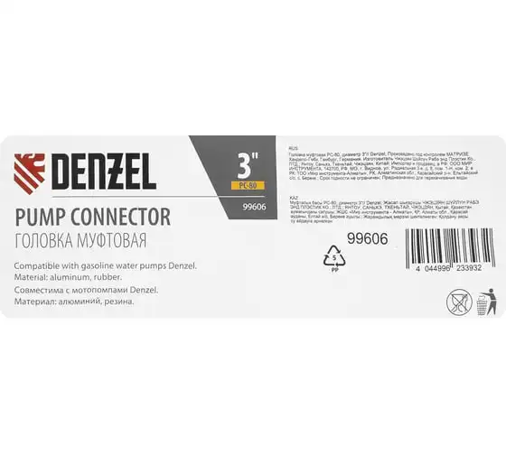Муфтовая головка Denzel PC-80 99606 с присоединительным диаметром 3" предназначена для соединения выходного патрубка мотопомпы с напорным рукавом. Подходит к моделям Denzel 99202 и 99204. Используется для организации систем полива, водоснабжения, пожаротушения.