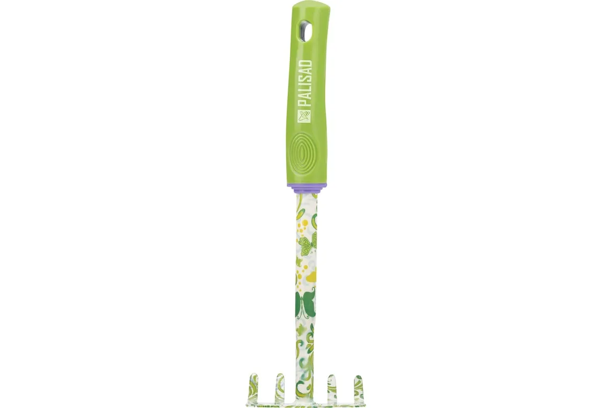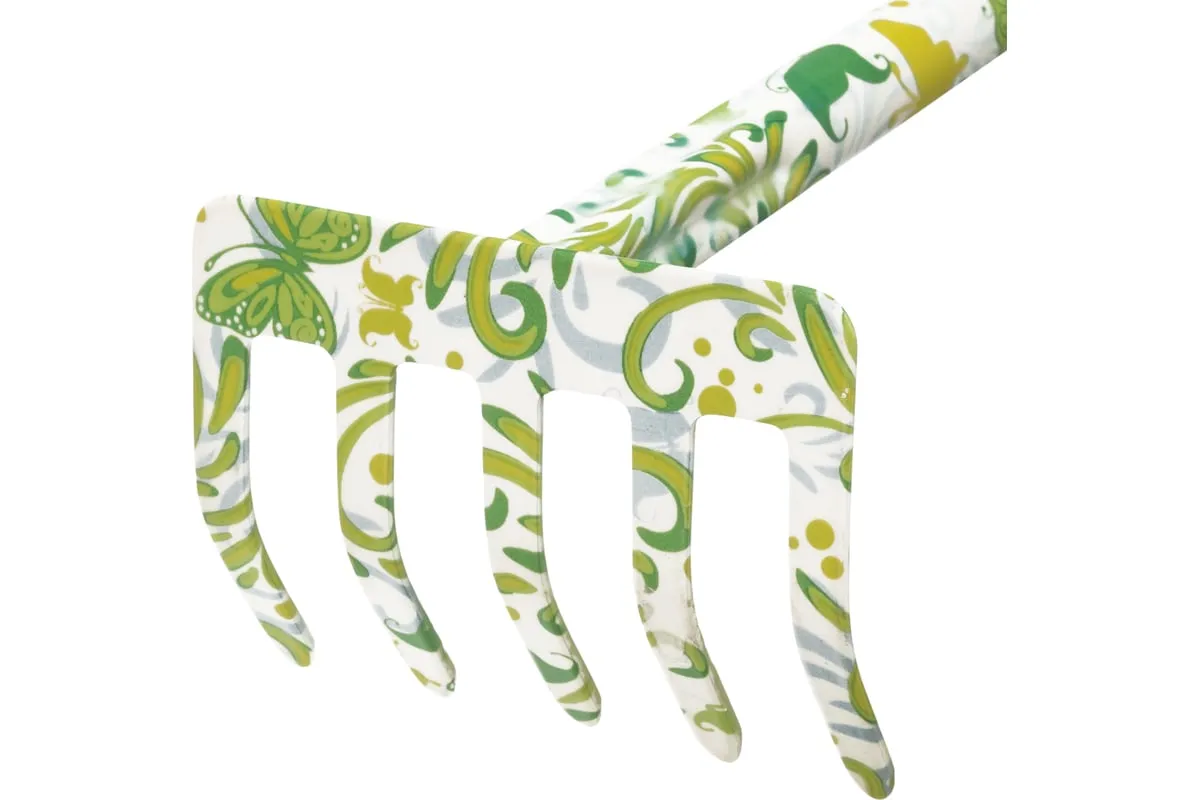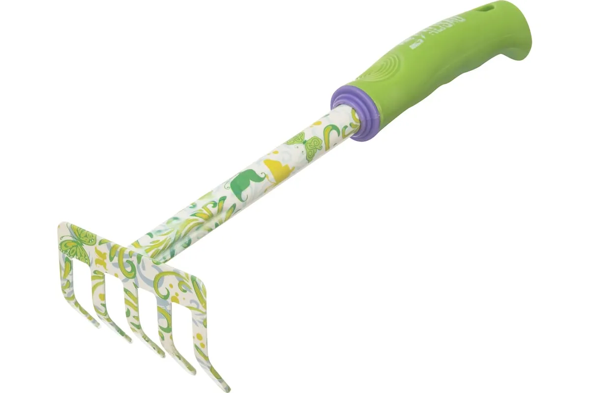 Грабли 5-зубые Palisad FLOWER GREEN 62039, 85 х 310 мм, стальные, с пластиковой рукояткой, служат для садовых работ на небольших участках земли. Они используются для рыхления грунта, подходят также для уборки мусора с грядок и клумб. Инструмент полностью готов к эксплуатации, т.к. поставляется в сборе с пластиковой рукояткой.