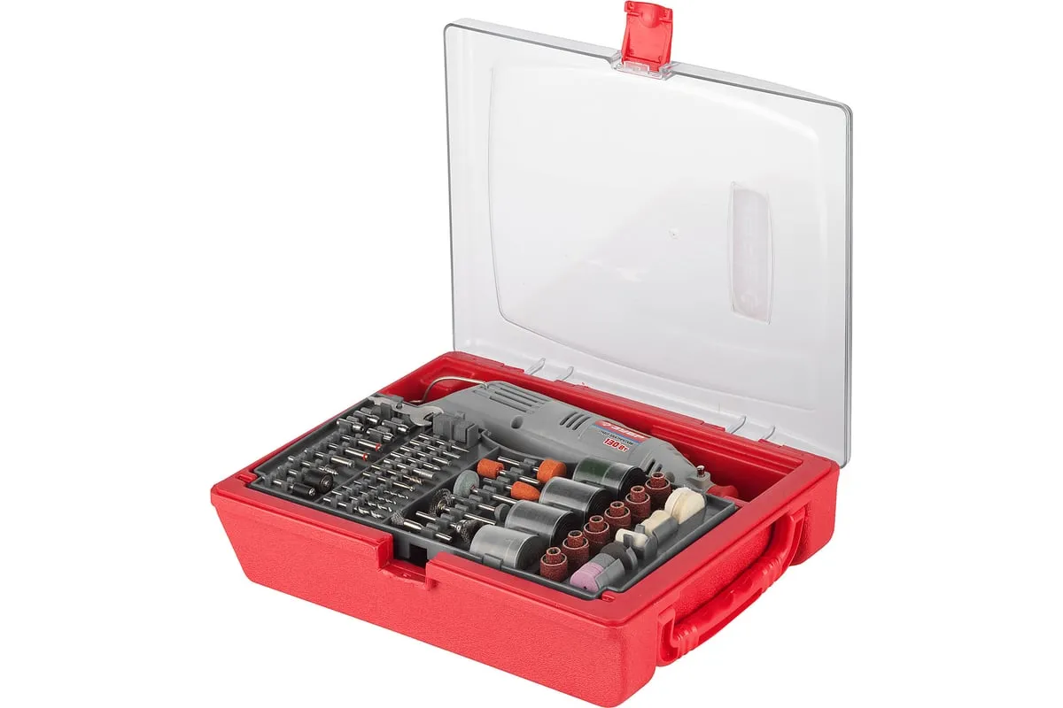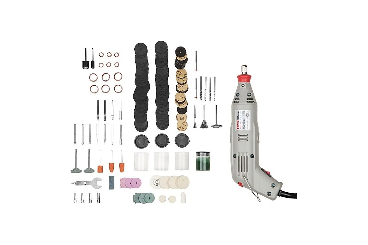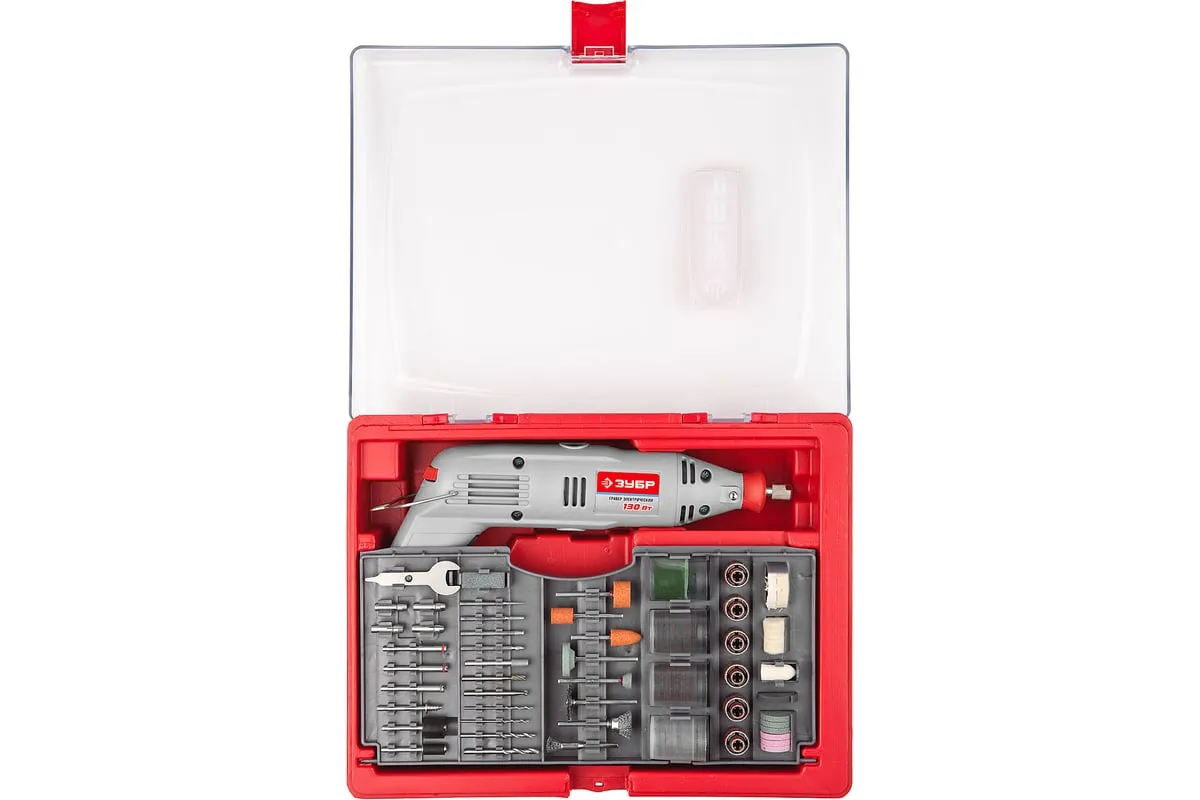 Гравер ЗУБР ЗГ-130ЭК + 176 предметов H176 предназначен для выполнения широкого спектра задач: резки, шлифования, полировки, гравирования - все зависит от установленной оснастки. Модель может одинаково продуктивно работать по металлу, стеклу, керамике, дереву и пластику. Блокировка шпинделя позволяет быстро и удобно менять оснастку. Комплект поставляется в удобном транспортировочном боксе.