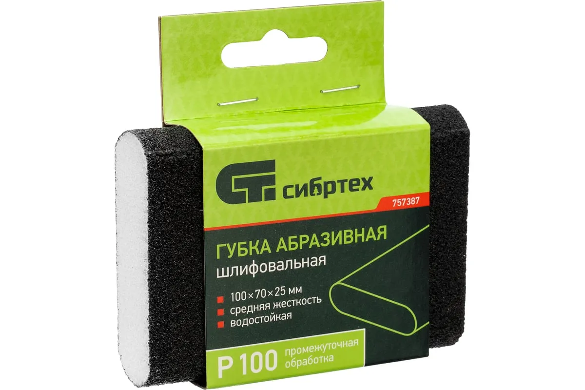 Губка для шлифования 100x70x25 мм, овал, средняя жесткость, Р100 СИБРТЕХ 757387 используется для проведения отделочных работ. Ее применяют для удаления старых лакокрасочных покрытий, ржавчины и заусенцев с деревянных, металлических, пластиковых и шпатлеванных поверхностей. Среднезернистый абразив оптимален для промежуточного шлифования. Губка покрыта абразивом с 4-х сторон, имеет зернистость - P 100.
