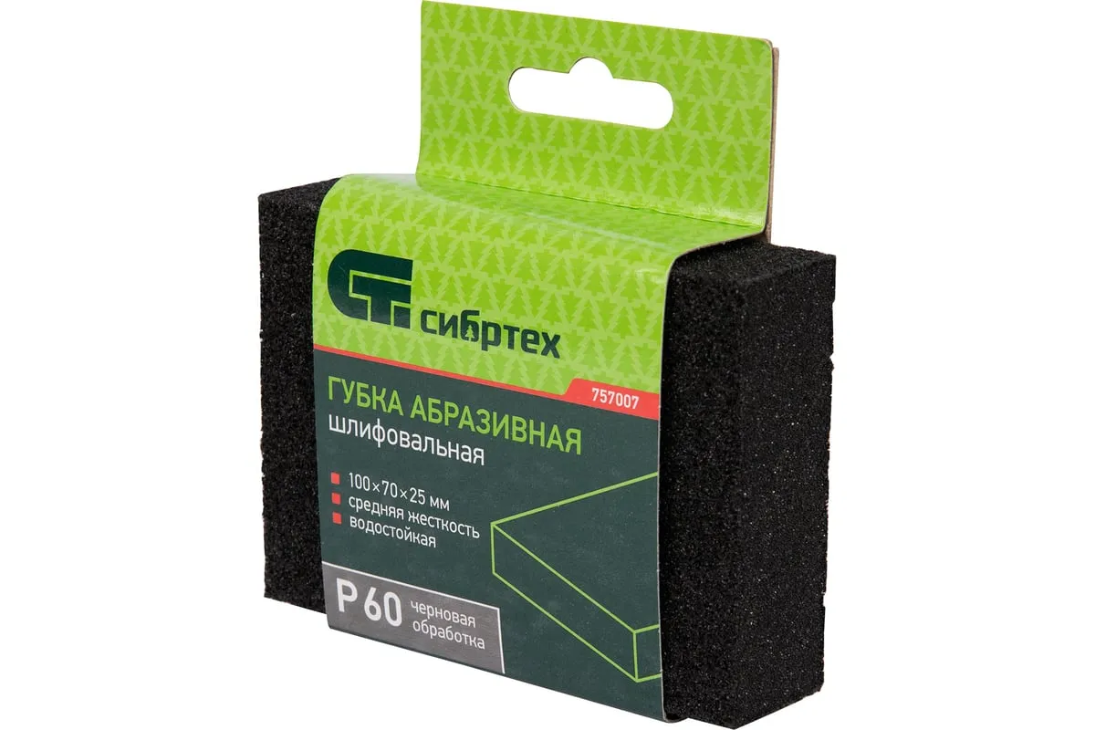Губка для шлифования 100x70x25 мм, средняя жесткость, Р60 СИБРТЕХ 757007 используется для черновой шлифовки деревянных, пластиковых, металлических, шпаклеванных поверхностей, удаления слоя краски и ржавчины. Абразивная губка пригодится для проведения строительных, ремонтных, кузовных работ, будет полезна в изготовлении мебели и в быту. Средняя жесткость - губка подходит для обработки металлических поверхностей, углов, кромок. Абразивный материал - твердый оксид алюминия. Губка покрыта абразивом с 4-х сторон, имеет зернистость - P 60.