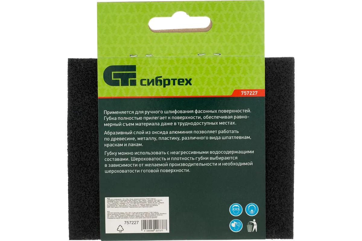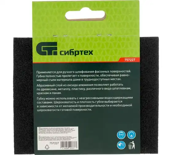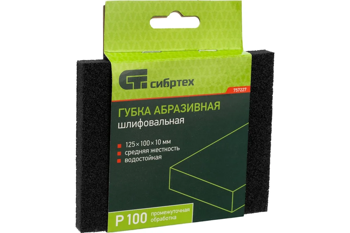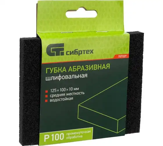 Губка для шлифования, 125x100x10 мм, средняя жесткость, Р100 СИБРТЕХ 757227 используется для чистовой шлифовки деревянных, пластиковых, металлических, шпаклеванных поверхностей, удаления слоя краски и ржавчины. Абразивная губка пригодится для проведения строительных, ремонтных, кузовных работ, будет полезна в изготовлении мебели и в быту. Средняя жесткость - губка подходит для обработки металлических поверхностей, углов, кромок. Абразивный материал - твердый оксид алюминия. Губка покрыта абразивом с 4-х сторон, имеет зернистость - P 100.