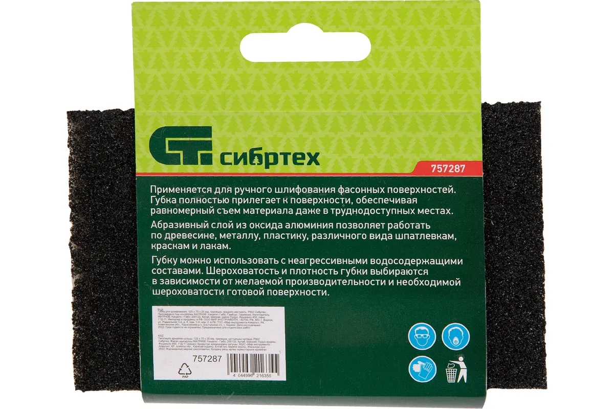Губка для шлифования 125x75x25 мм, трапеция, средняя жесткость, Р60 СИБРТЕХ 757287 используется для ручной обработки дерева, пластика, металла. Благодаря размерам зерна она эффективно удаляет краску, ржавчину, грубые неровности. Применяется при отделочных работах, кузовном ремонте, изготовлении мебели. Крупнозернистый абразив P 60 из твердого оксида алюминия позволяет с высокой эффективностью проводить грубую (черновую) шлифовку даже при большом объеме работ.