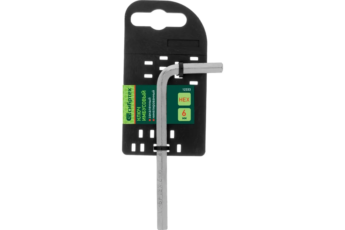Ключ имбусовый Сибртех 12333, 6 мм, из закаленной стали 45Х, никелированный, используется для монтажа и демонтажа резьбовых крепежей с шестигранными шлицами HEX. Пригодится при сборке мебели, ремонте велосипедов, регулировке пластиковых окон и балконных дверей.