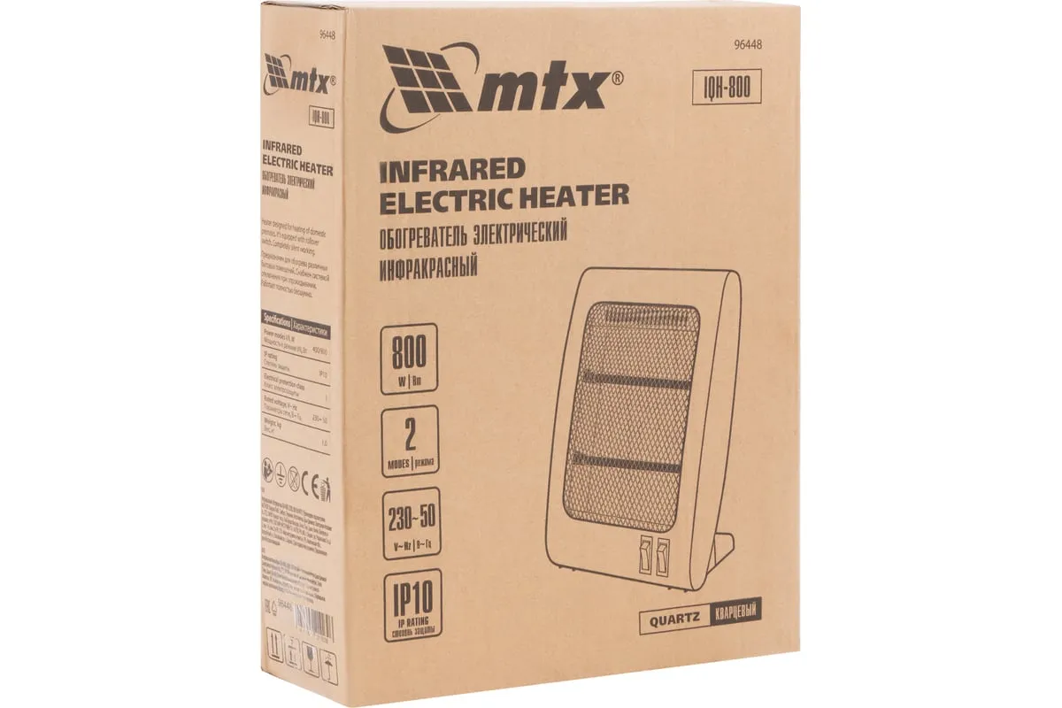 Инфракрасный обогреватель MTX IQH-800, 230В, 800 Вт 96448 отлично подойдет для помещений с недостаточной теплоизоляцией. Благодаря инфракрасному принципу обогрева энергия тратится на нагрев предметов, без расхода на нагрев воздуха. Это дает более быстрое ощущение тепла при сохранении "эффекта свежего воздуха".