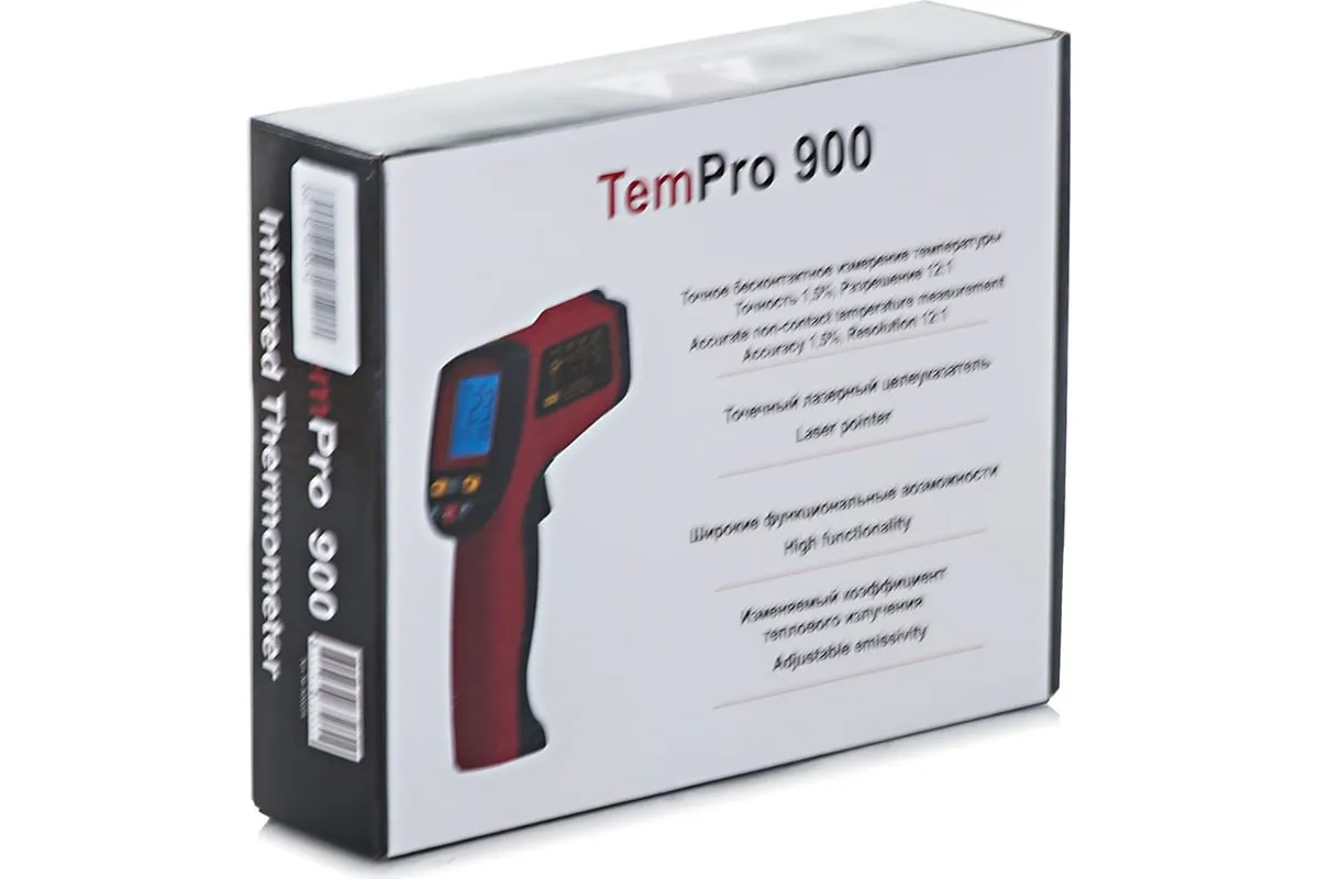 Инфракрасный пирометр ADA TemPro 900 А00225 имеет пистолетную форму для максимального удобства в применении. Измеряет температуру объектов бесконтактным способом. Все измерения происходят путем нажатия на курок и наведения точечного лазера на объект. Высокое оптическое разрешение позволяет эффективно производить замеры на расстоянии. Аккумуляторная крона обеспечивает длительную беспрерывную работу. Полученные значения можно сохранять в памяти прибора.