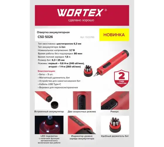 Электрическая отвертка WORTEX CSD 2016 в блистере 1323397