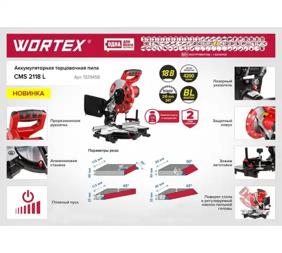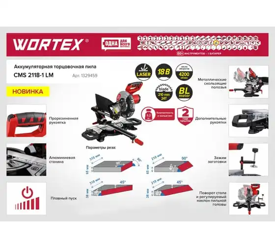 Аккумуляторная торцовочная пила WORTEX СMS 2118 L 1329458