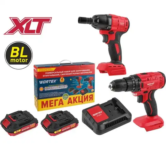 Набор аккумуляторного инструмента WORTEX: шуруповерт + гайковерт ALL1, в коробке 1329368