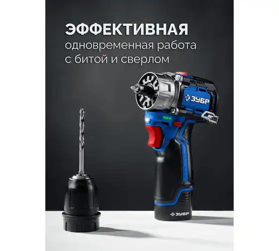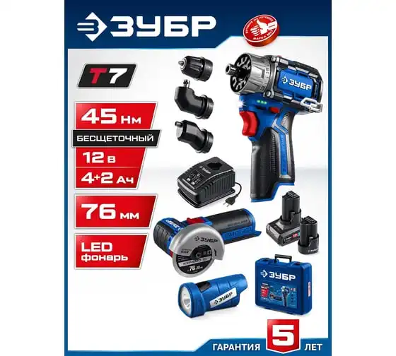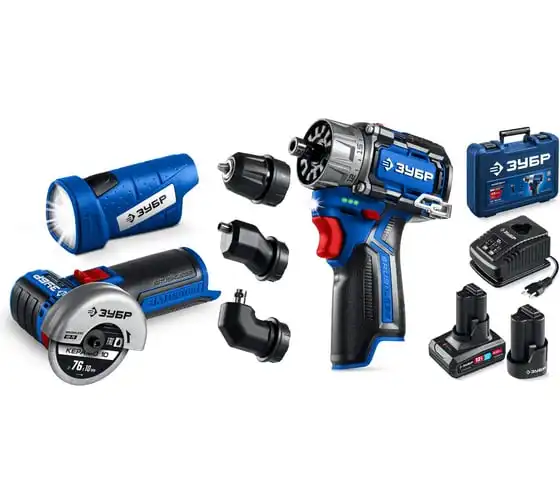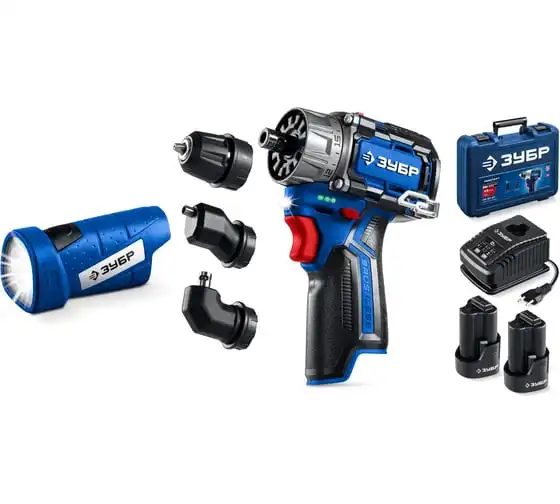 Набор ЗУБР Профессионал дрель-шуруповерт + мини УШМ + LED фонарь, 12В, 45Нм, 2 аккумулятора, тип Т7, 4 и 2Ач, кейс DB-125-42ABF