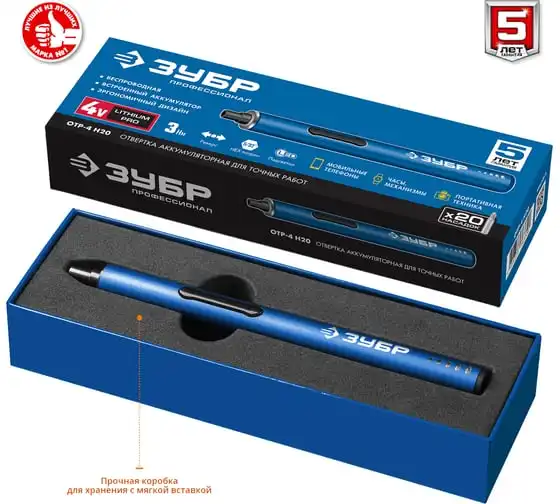 Аккумуляторная отвертка для точных работ Зубр Профессионал 4 Vmax, с набором 20 бит ОТР-4 Н20