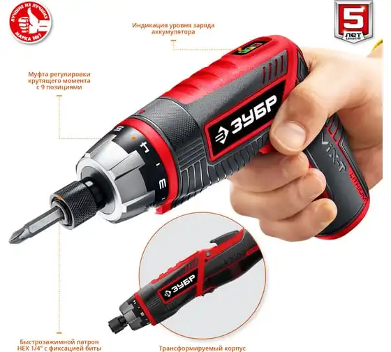 Аккумуляторная отвертка-трансформер ЗУБР ViX-T 10 бит ЗО-ЕМ-3.6 Ли