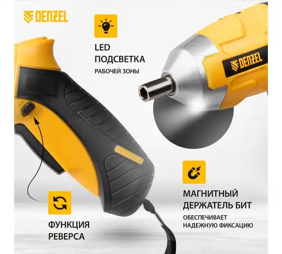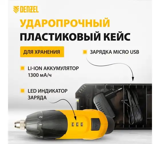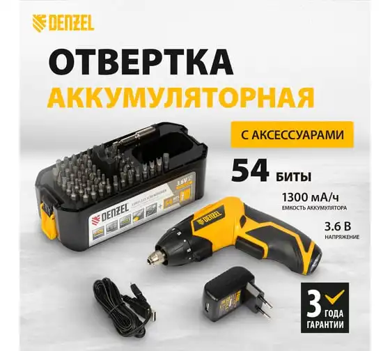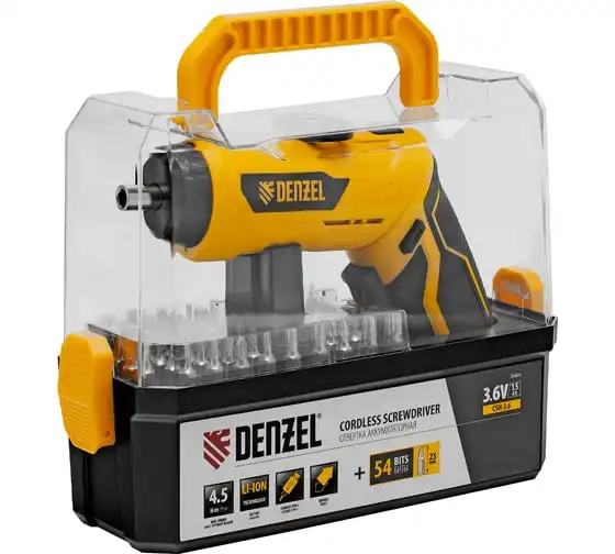 Отвертка аккумуляторная Denzel CSH-3.6, 54 биты, Li-Ion, 3,6 В 26004