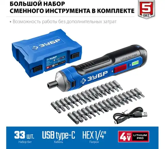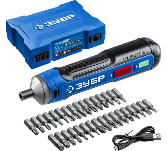 Аккумуляторная отвертка ЗУБР Профессионал 4 Vmax, в кейсе с набором 33 бит PSD-4S