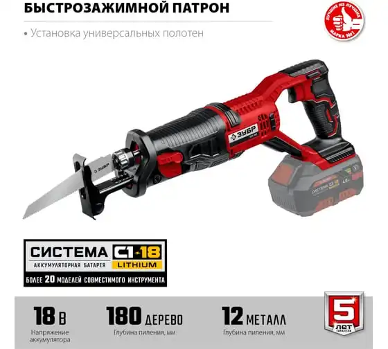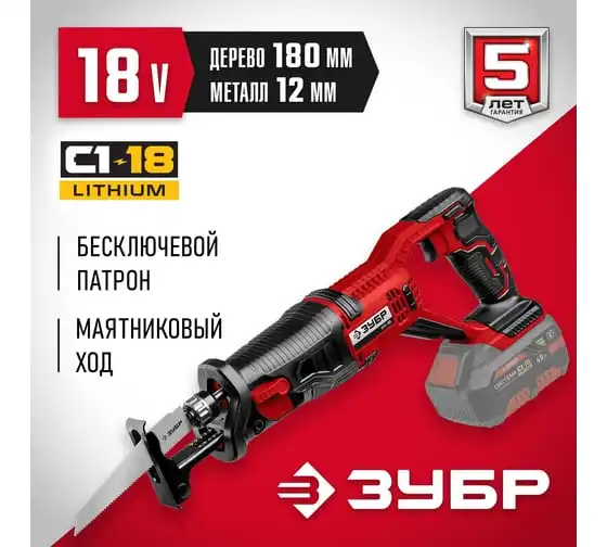 Сабельная пила ЗУБР 18 В, без АКБ, в коробке СПЛ-185