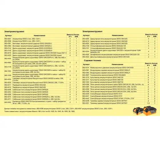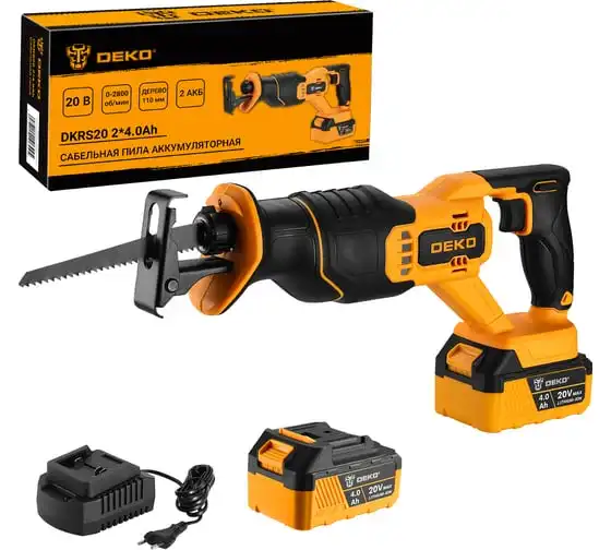 Аккумуляторная сабельная пила DEKO DKRS20, 20В, 2х4.0Ач 063-4359