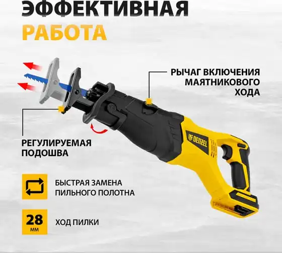 Пила сабельная аккумуляторная Denzel RS-180, Li-Ion, 20 В 28801