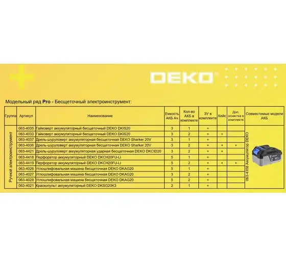 Углошлифовальная машина DEKO DKAG20-125, 1х4.0Ач 063-2150