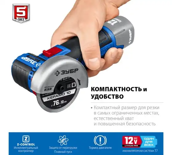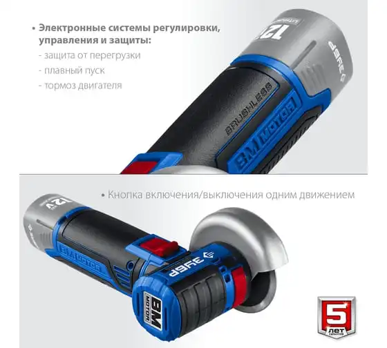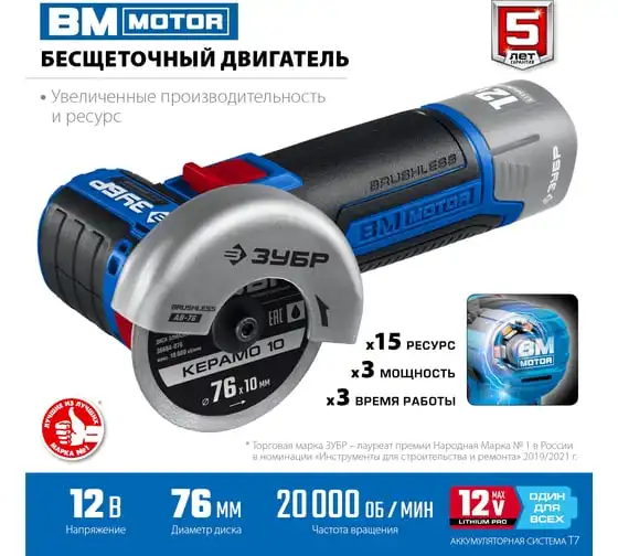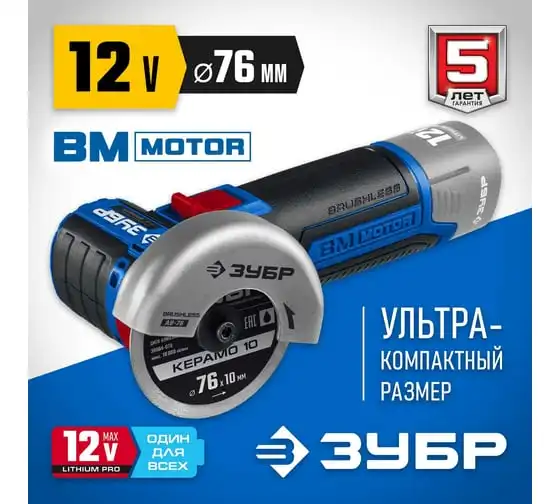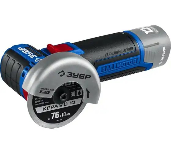 Бесщеточная угловая шлифмашина ЗУБР Профессионал 12 В, без АКБ, в коробке AB-76