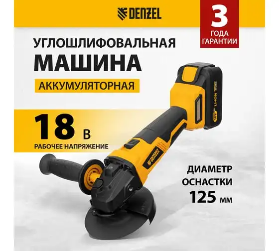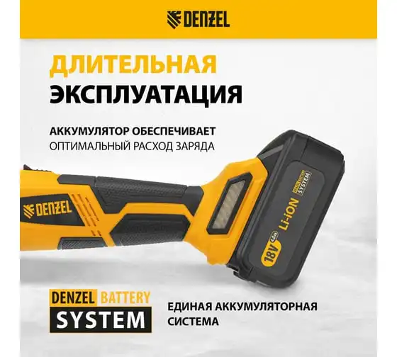 Углошлифовальная аккумуляторная бесщеточная машина Denzel blg-ib-18-125-4, li-ion, 18 В 27005