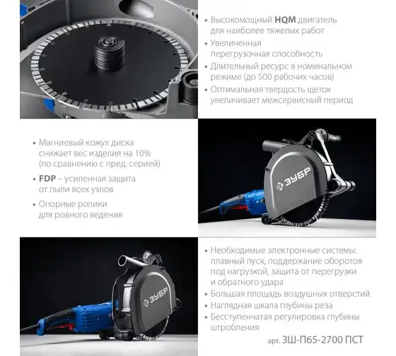 Штроборез (бороздодел) ЗУБР Профессионал d 230 мм, 2700 Вт, 65 мм ЗШ-П65-2700 ПСТ