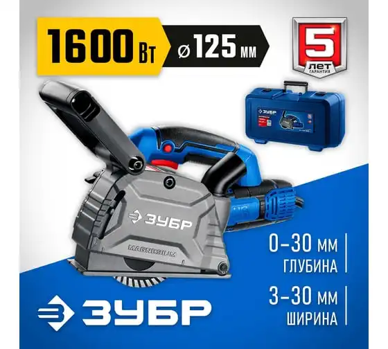 Штроборез (бороздодел) ЗУБР Профессионал d 125 мм, 1600 Вт, 30 мм ЗШ-П30-1600 ПСТ