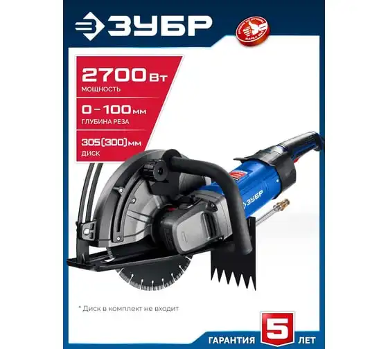 Штроборез (бороздодел) ЗУБР Профессионал d 305мм, 2700Вт, 100мм, ЗШ-П100-2700 ПСТ