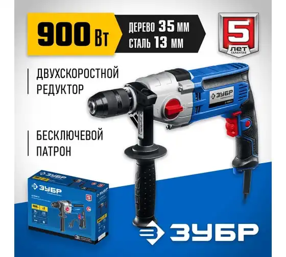 Профессионал безударная 2-х скоростная дрель ЗУБР 900 вт Д-П900-2