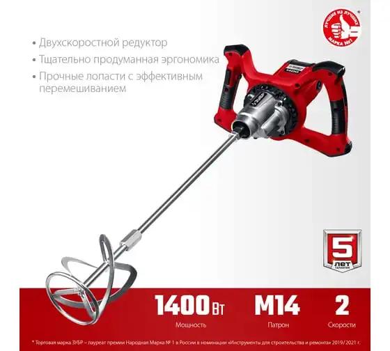 Строительный миксер ЗУБР МР-1400-2