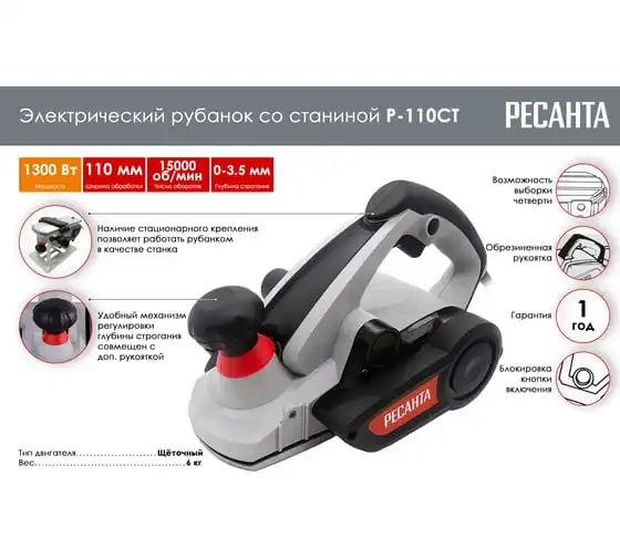 Электрический рубанок Ресанта Р-110СТ 75/5/3