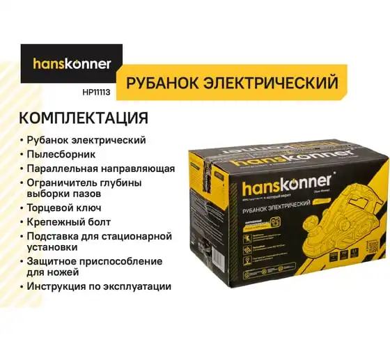 Рубанок Hanskonner 1300Вт 110мм HP11113