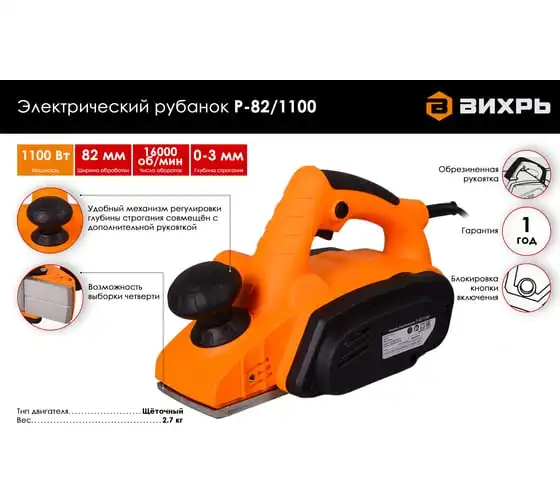Электрический рубанок Вихрь Р-82/1100 72/5/5