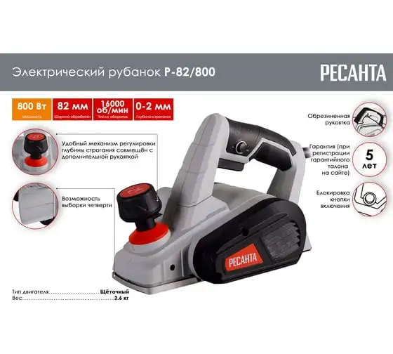 Электрический рубанок Ресанта Р-82/800 75/5/1
