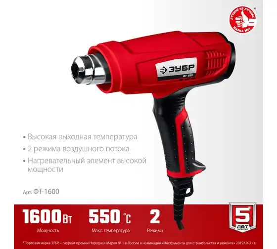 Технический фен ЗУБР 1600Вт ФТ-1600