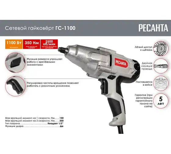 Сетевой гайковёрт Ресанта ГС-1100 75/24/1