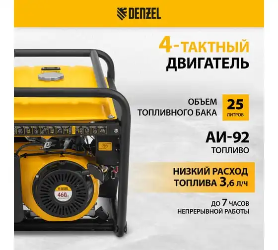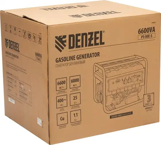 Генератор бензиновый Denzel PS 80 E-3, 6.6 кВт, 400 В, 25 л, электростартер 946954