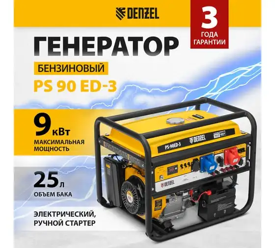 Бензиновый генератор DENZEL PS 90 ED-3, 9,0кВт 946944
