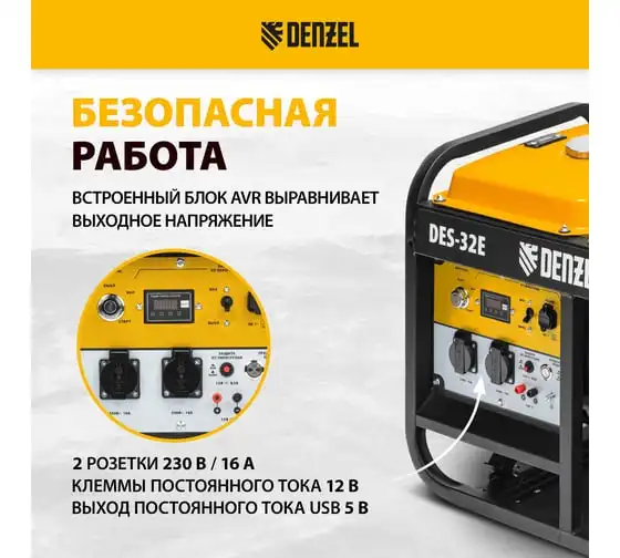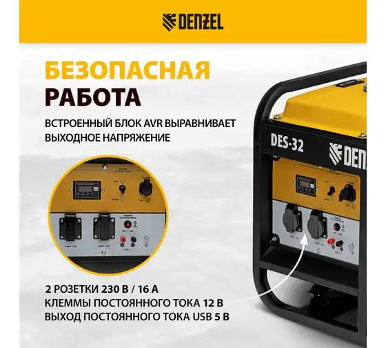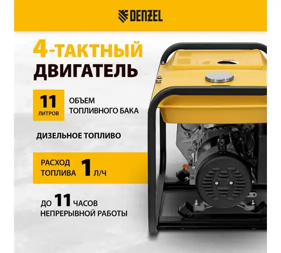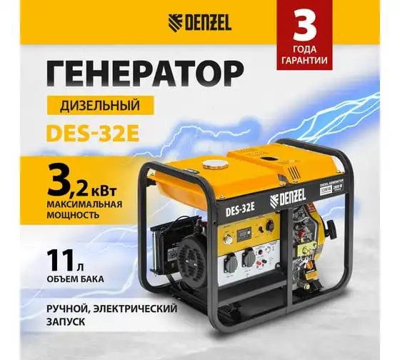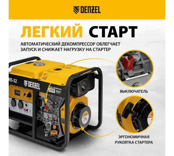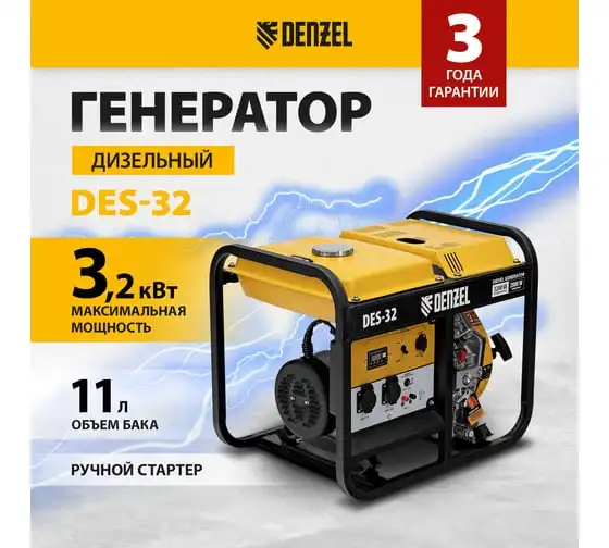 Дизельный генератор Denzel des-32, 3.2 квт, 230 в, 11 л, ручной стартер 94411