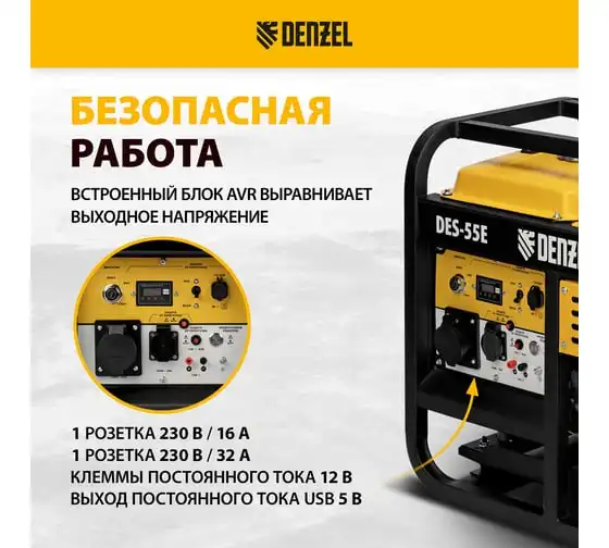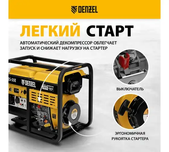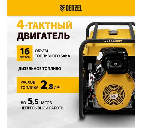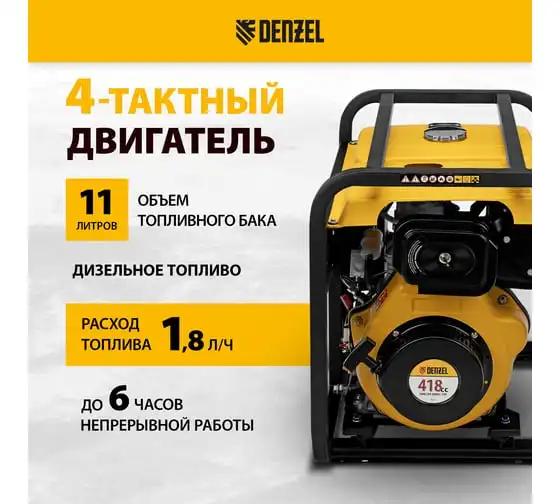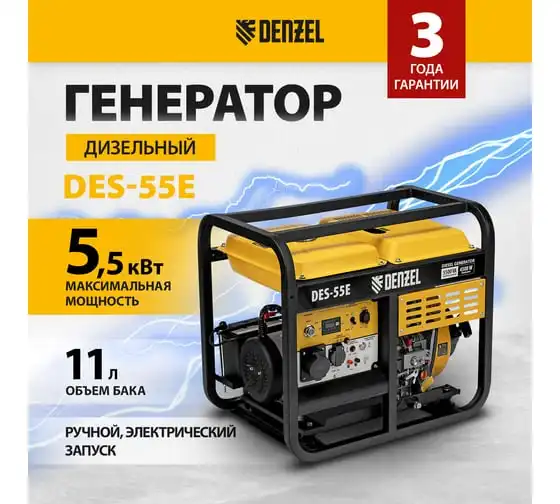 Дизельный генератор Denzel DES-55E 5.5 кВт, 230 В, 11 л, электростартер 94414