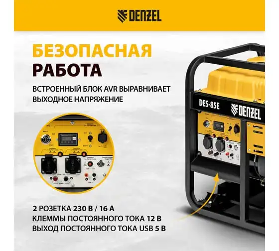 Дизельный генератор Denzel DES-85E 8.5 кВт, 230 В, 16 л, электростартер 94415